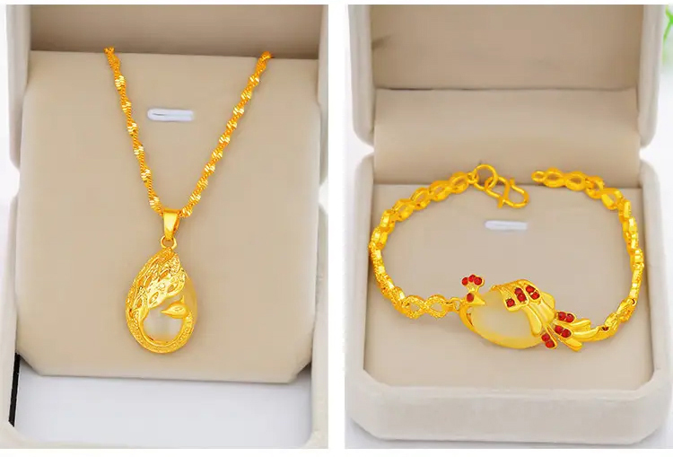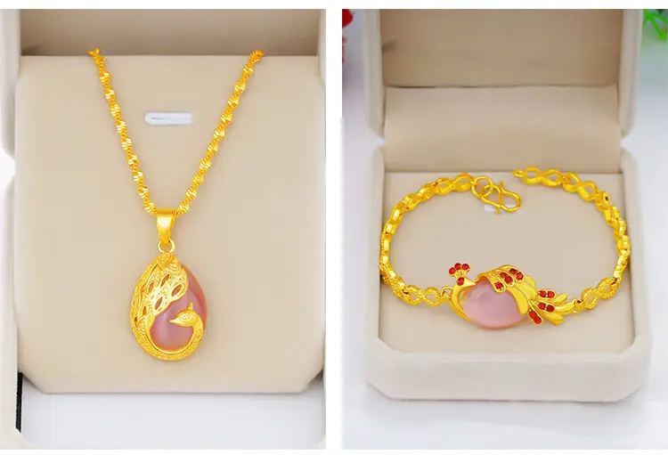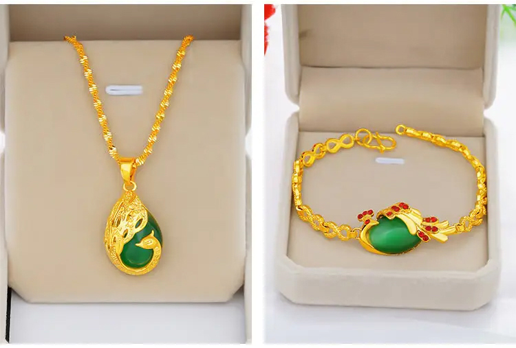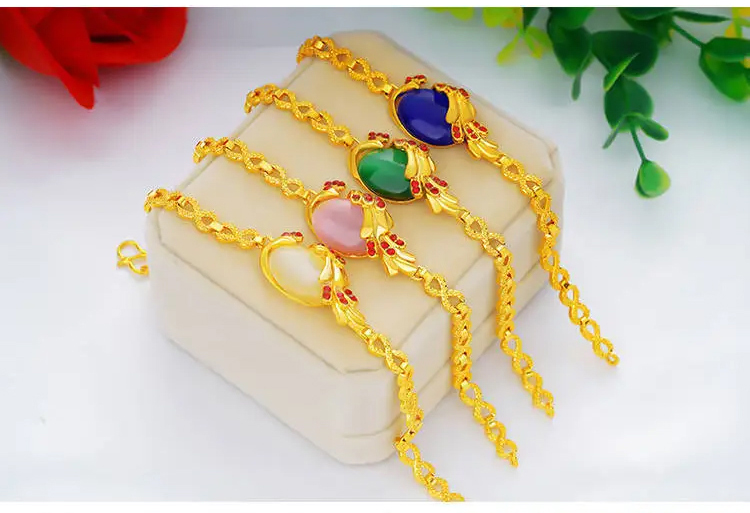 สร้อยข้อมือทองคำรูปนกยูงแบบ 2 ชิ้น ทองคำ 9999 พร้อมหินพลอย แย่งซื้อจำกัดเวลา ชุดละ ฿1298 ผ่านการรับรองเชื่อถือได้ระดับสากล คุ้มค่ามาก